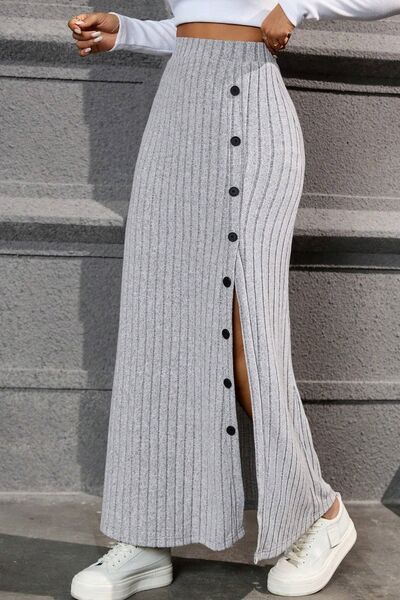 Slit Ribbed High Waist Skirt