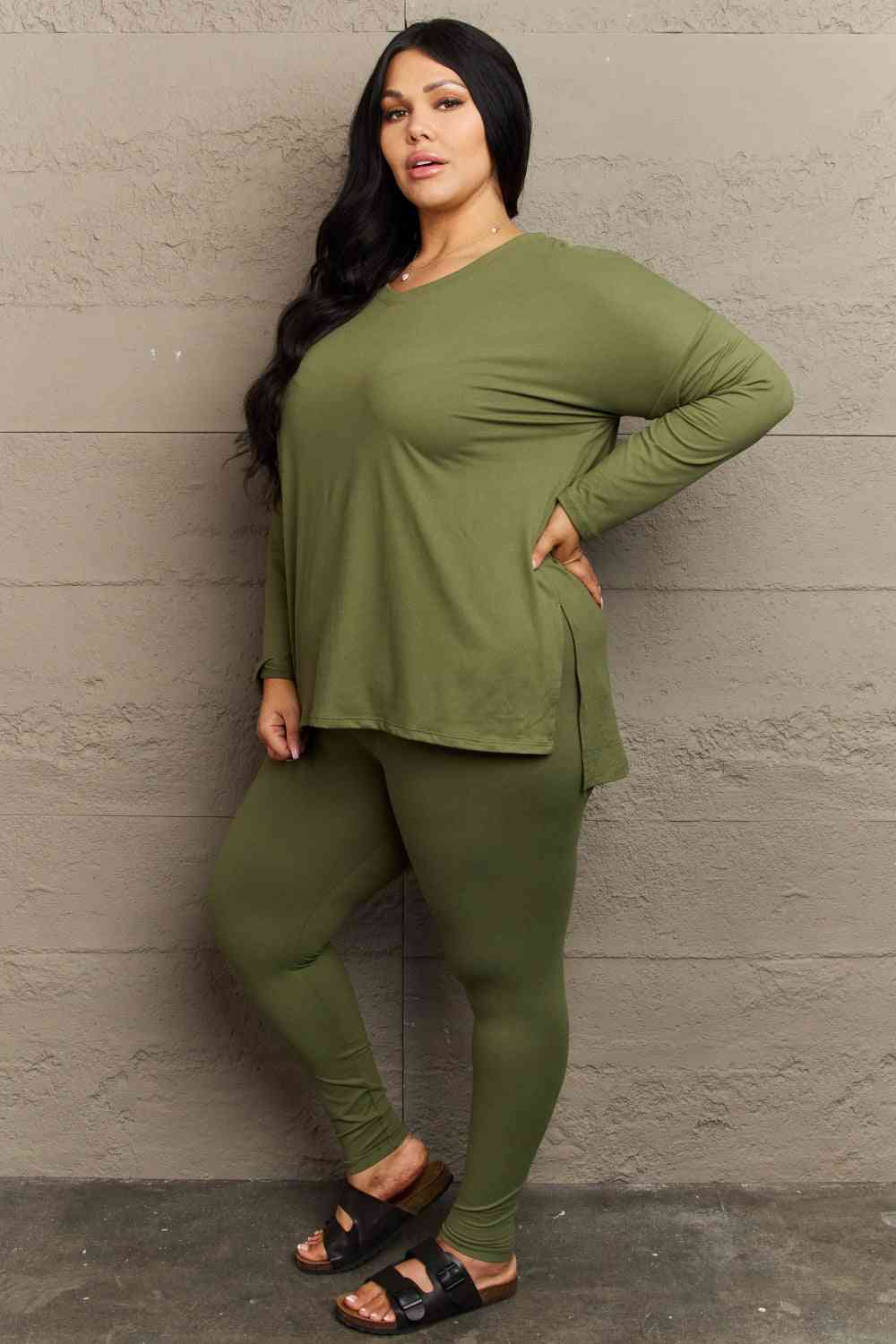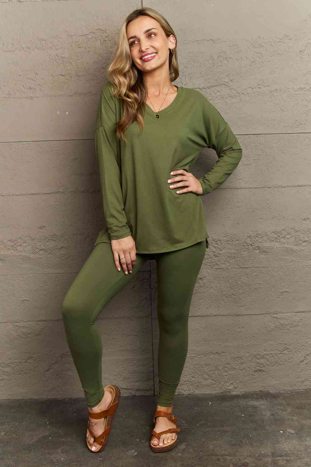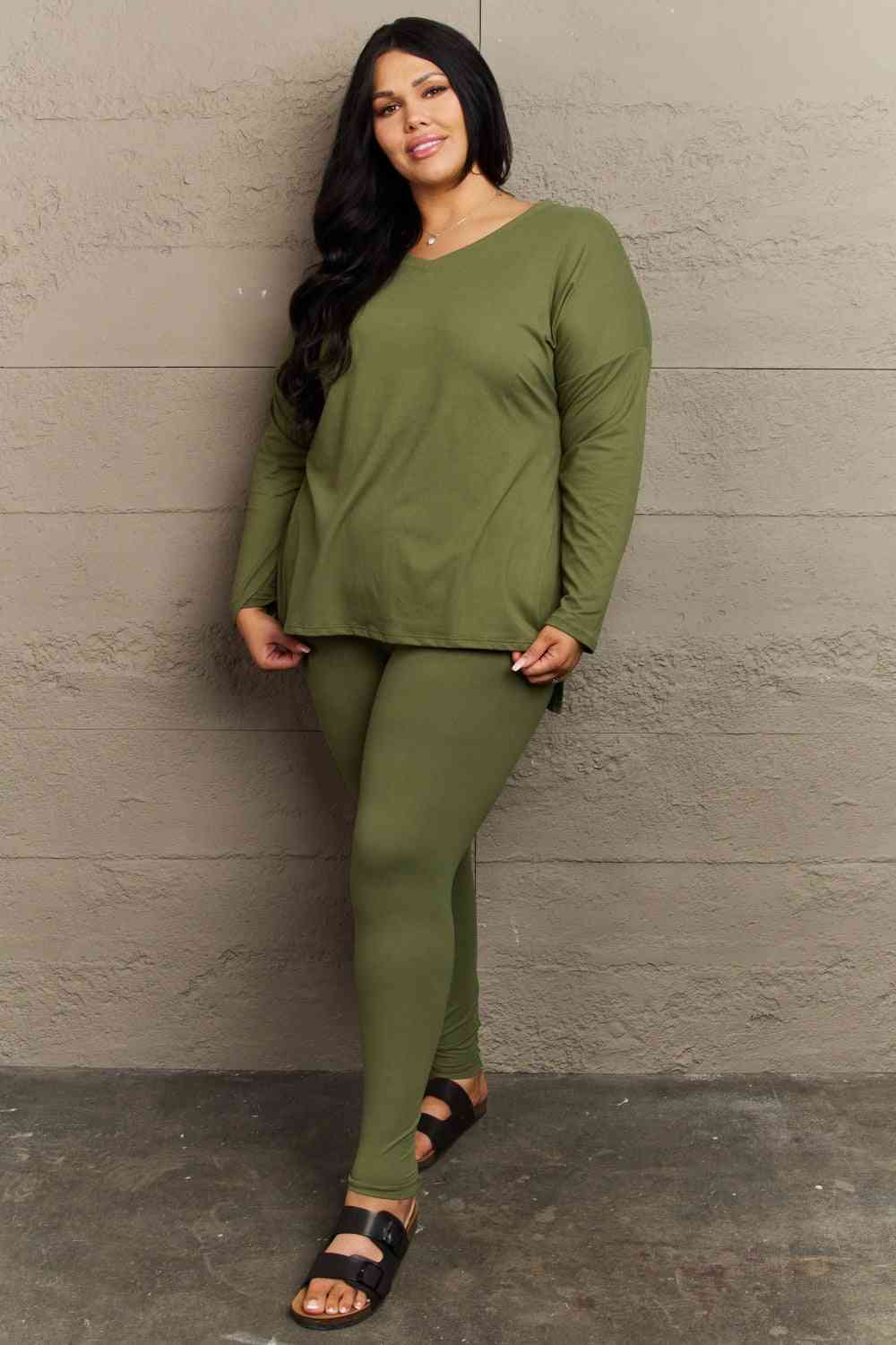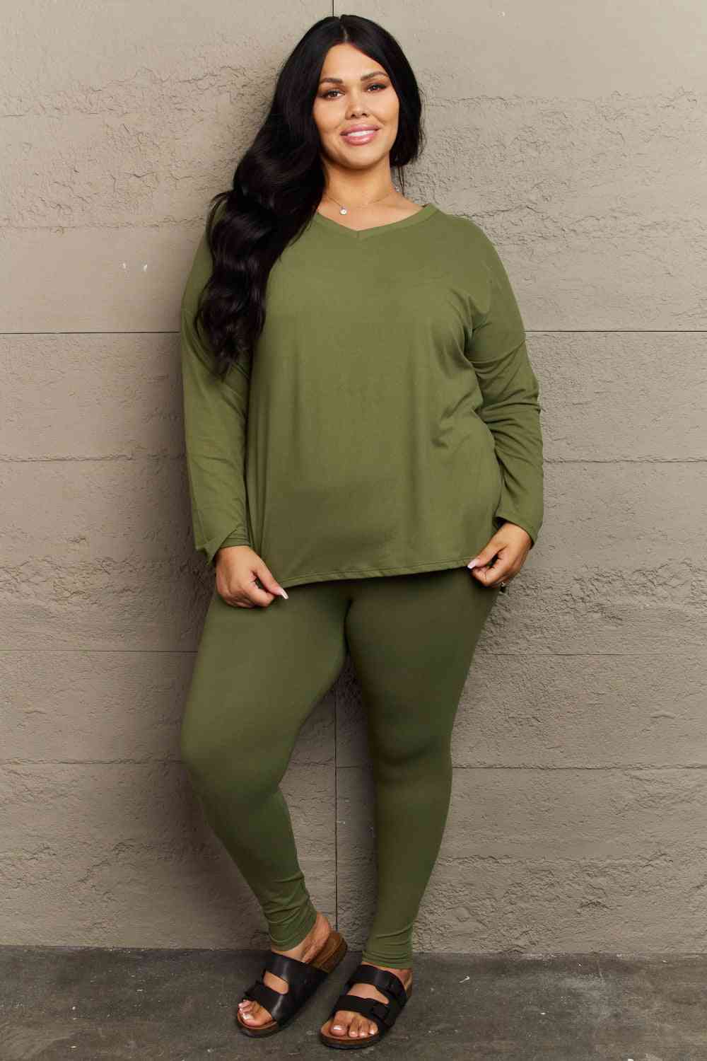 Zenana Lazy Days Full Size Long Sleeve and Leggings Set