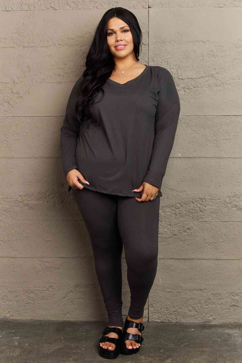 Zenana Lazy Days Full Size Long Sleeve and Leggings Set